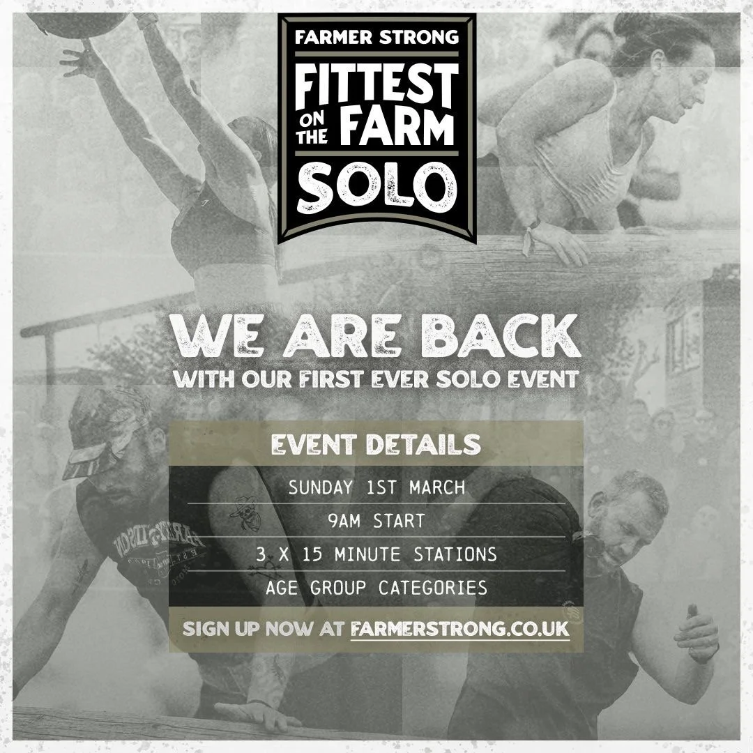 Fittest on the Farm: Solo is a brand-new individual event for anyone who wants to challenge themselves and give it a go. You’ll take on three 15-minute workouts, with 5 minute to recover between each one, and every rep you earn counts. It’s not about being the fastest or beating everyone else — it’s about showing up, putting the work in, and seeing what you’re capable of. With male and female categories, age groups, and a supportive crowd around you, it’s a proper day on the farm where effort matters, everyone belongs, and you’ll leave proud of what you’ve done.